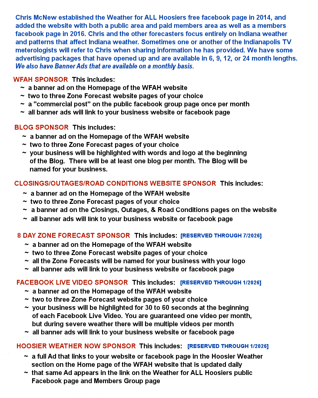 - Banner Ads will include your logo, area served, and link to your website, Facebook page or email